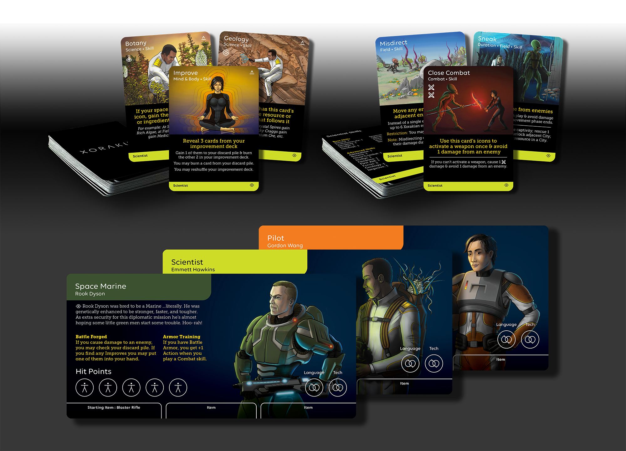 Customize your skill deck to become more sneaky, violent, communicative or scientific.